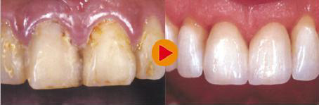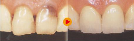 歯の表面を、エナメル質の範囲内でわずかに削り(削らない場合もあります)、特殊な接着剤で、セラミック素材を薄く貼り付ける方法です。歯の形、大きさ、色、歯並び、歯のすき間を改善したい場合、つまり審美的回復に有効な治療です。